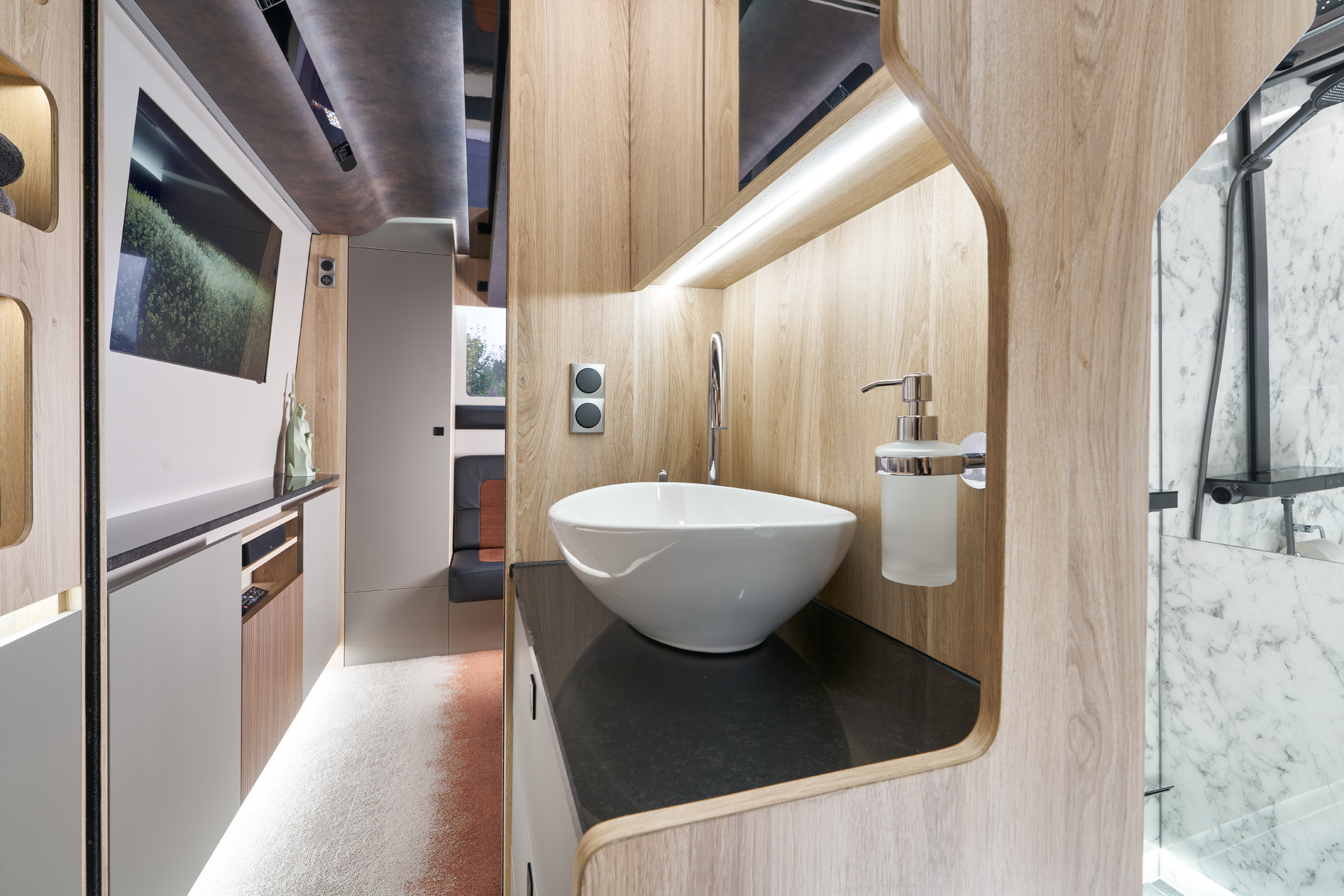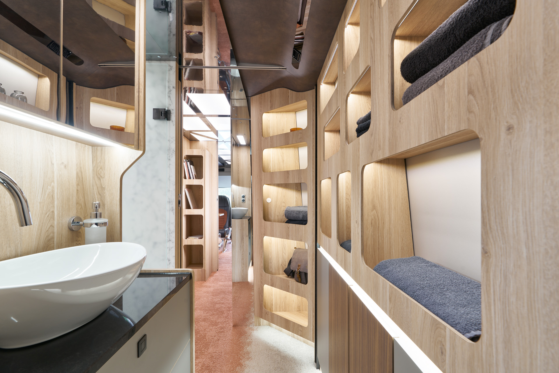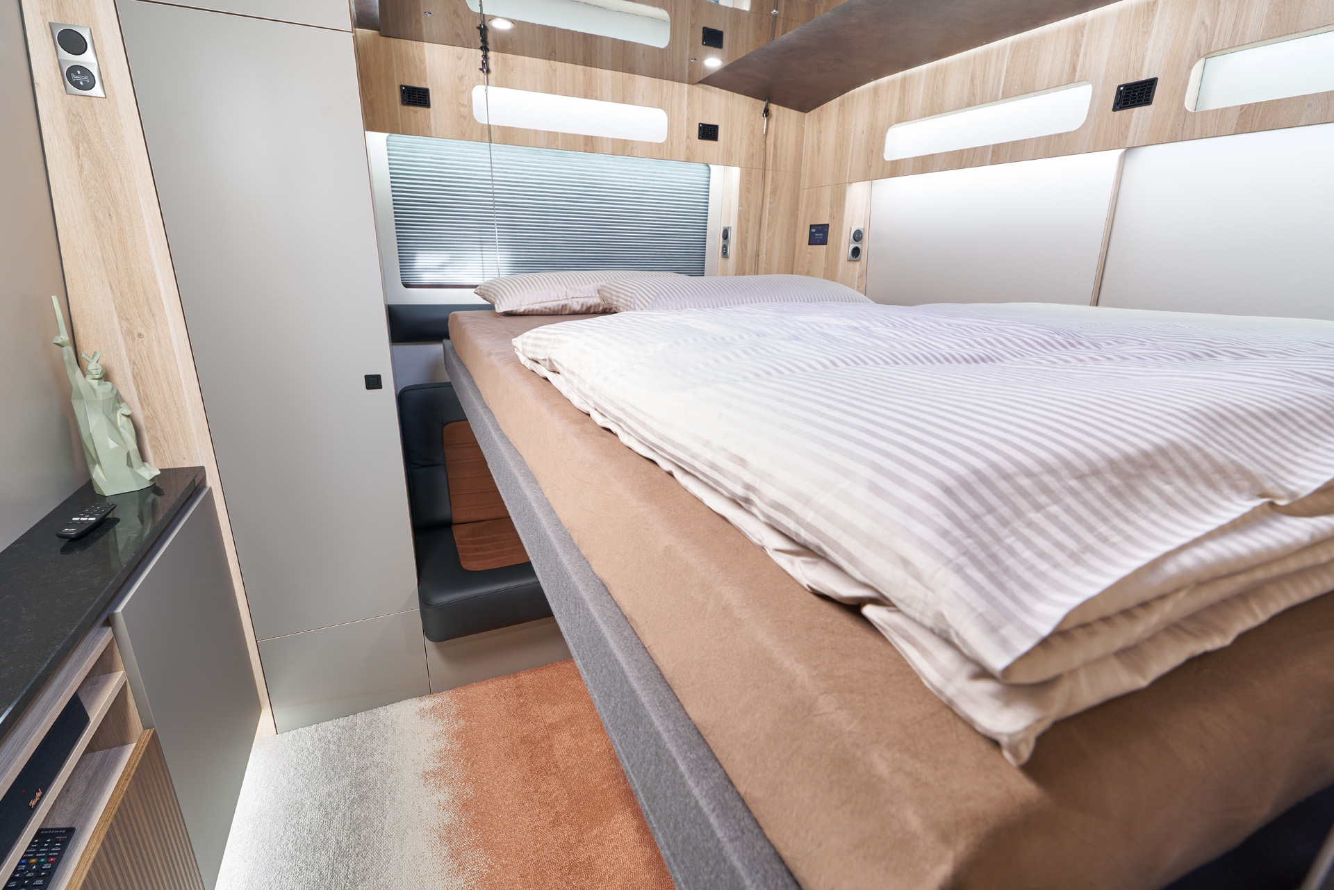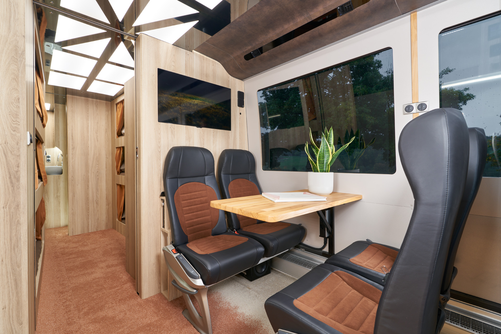 Der Setra 517 HD bildet die Basis für unsere überarbeitete Designlinie der Single-Decker-Fahrzeuge. Die SHD45NG Fahrzeuge sind energieeffizienter, luxuriöser und bieten mehr persönlichen Stauraum sowie ein neues Raumgefühl. Es sind individuelle Varianten mit bis zu 12 Betten, Lounges und Suiten realisierbar.