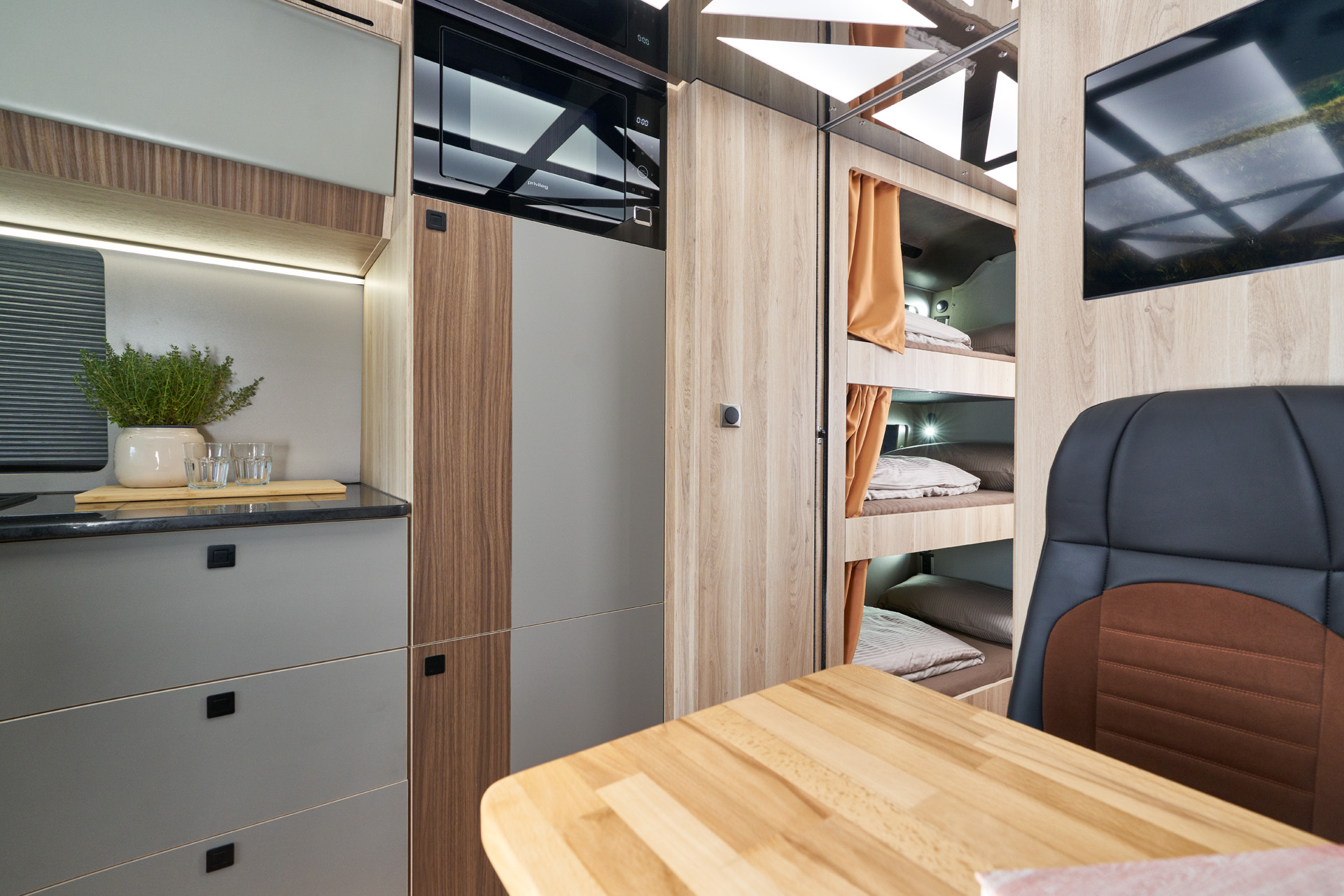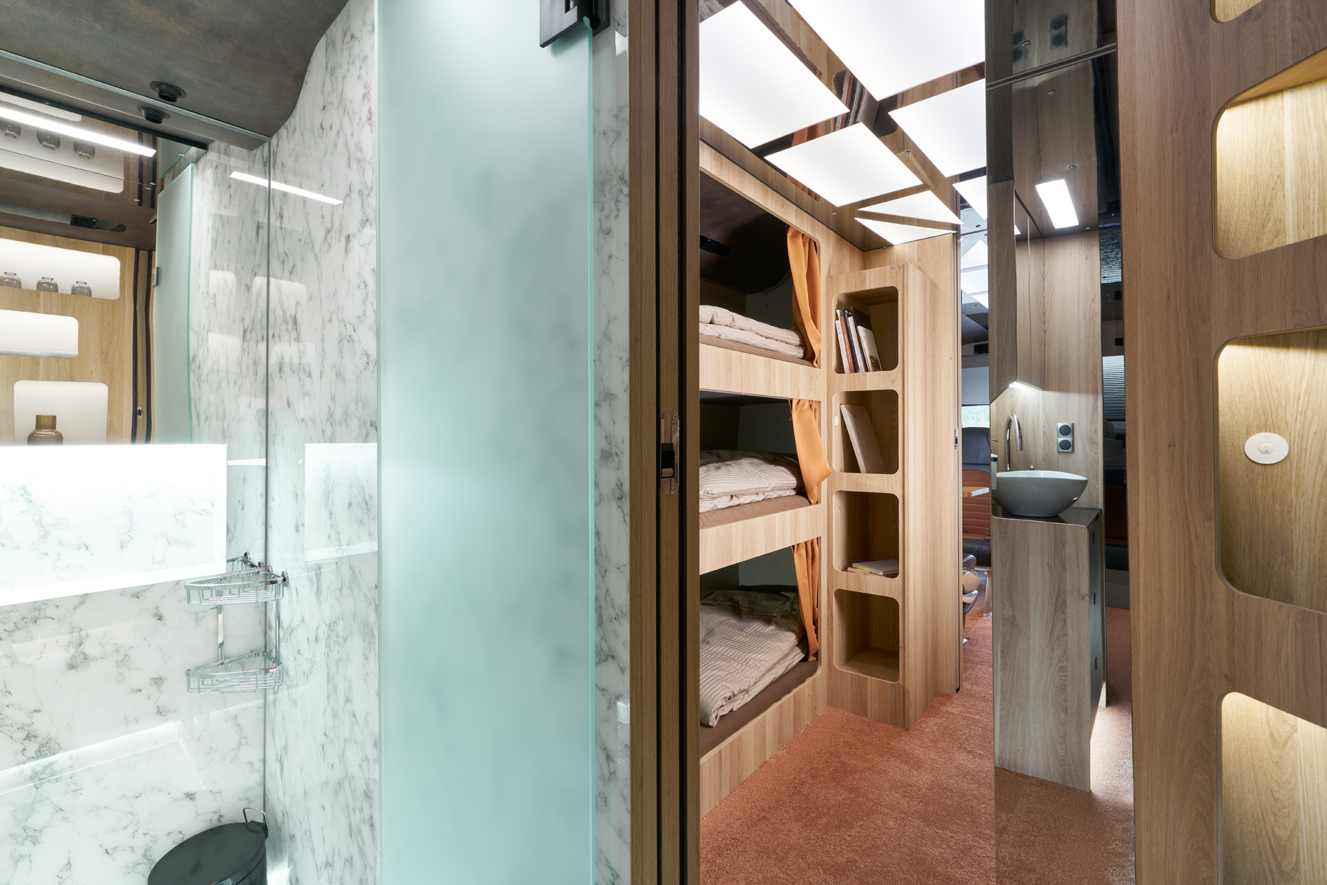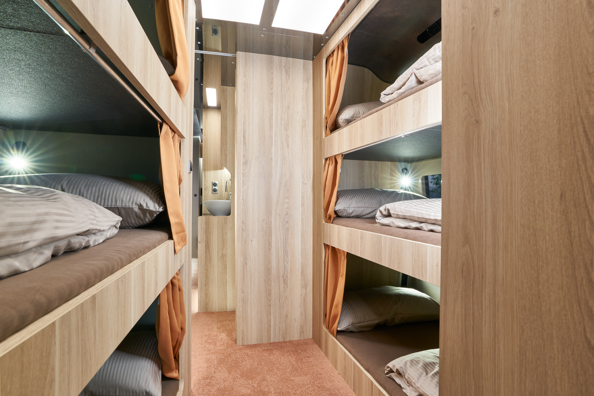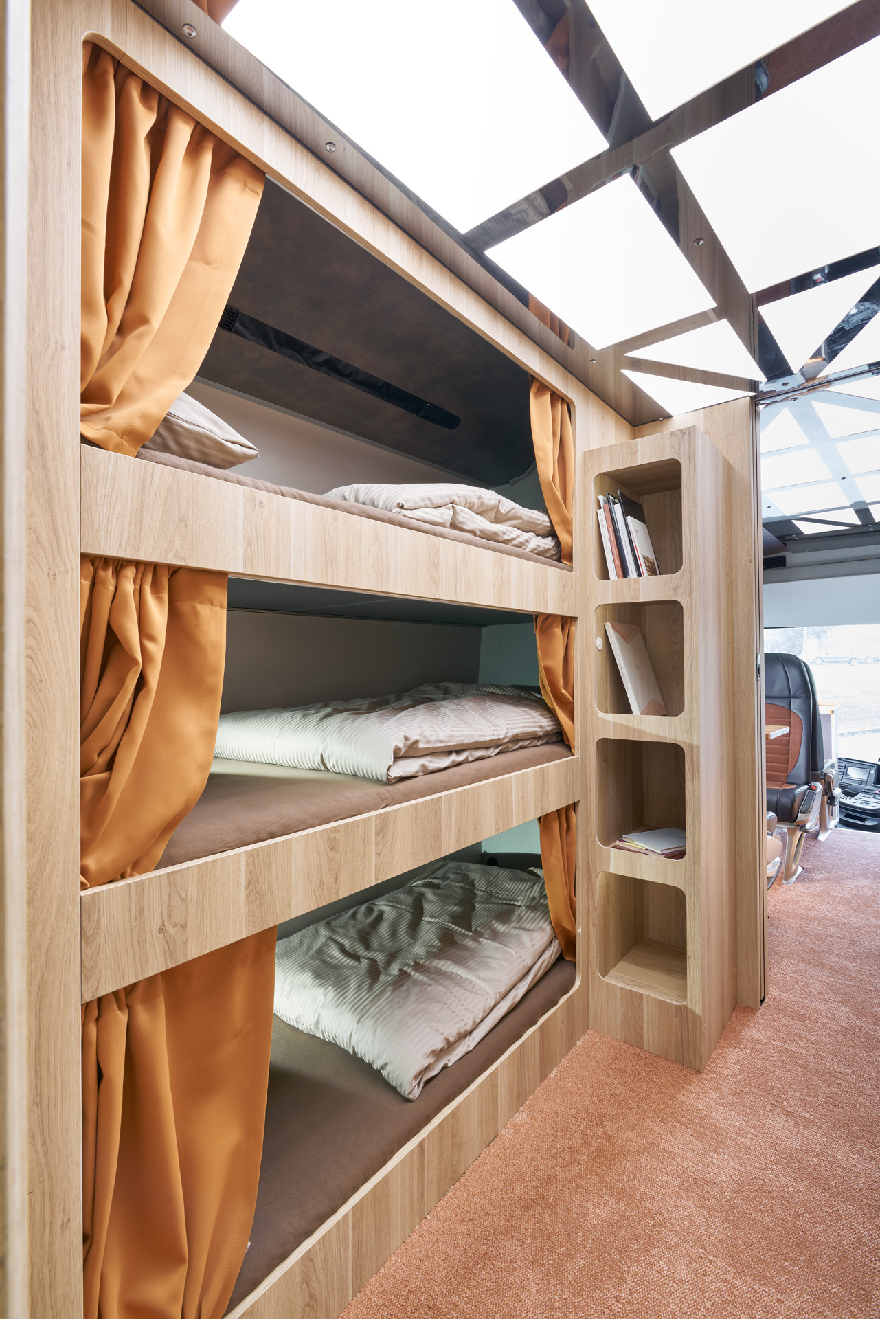 The Setra 517 HD forms the basis for our revised design line of Single Decker vehicles. The SHD45NG vehicles are more energy-efficient, more luxurious, and offer more personal storage space and a new sense of space. Individual variants with up to 12 beds, lounges, and suites can be realized.